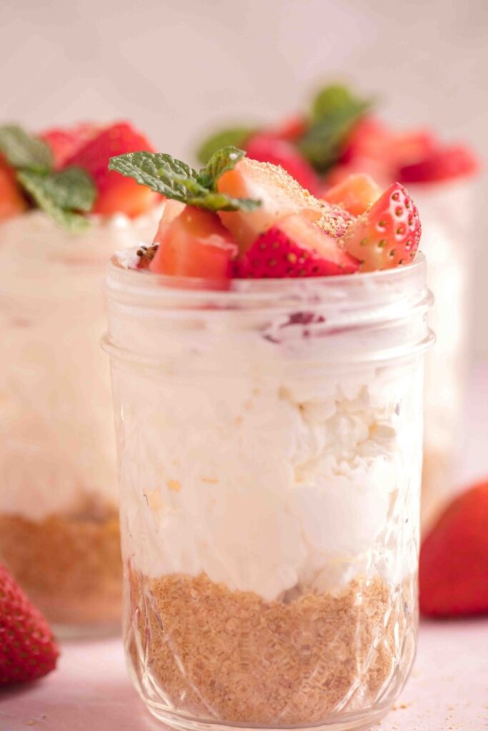 - Whipped Cream & Berry Finish: Top each jar with a swirl of whipped cream, a sliced strawberry, and a light dusting of graham cracker crumbs for a polished look.